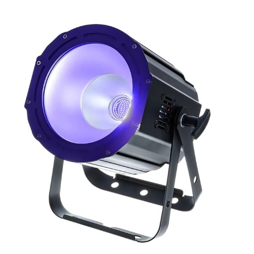 Ce projecteur utilise une LED COB (Chip On Board) de 100 W, ce qui lui confère une puissance remarquable et un rendu uniforme. Contrairement aux anciennes lampes UV, il offre une couverture large et homogène, sans zones sombres. De plus, la technologie LED garantit une faible consommation d’énergie ainsi qu’une durée de vie prolongée. Ainsi, le UV COB Cannon représente un choix économique et durable pour vos événements.