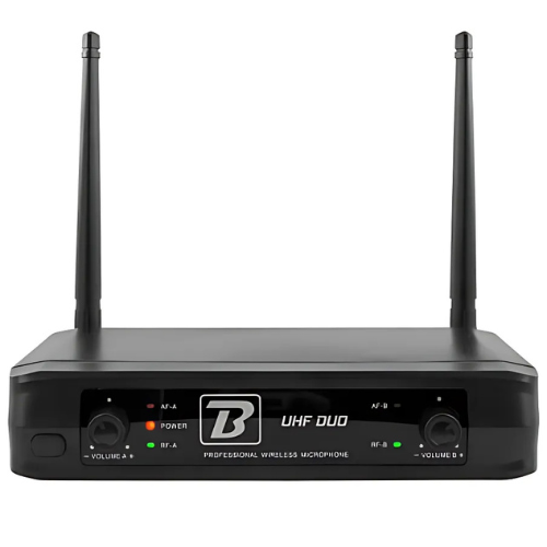 Micro sans fil UHF BoomToneDJ UHF 20, clair et fiable, idéal pour mariages, soirées et concerts. Transmission stable et liberté de mouvement pour DJs et animateurs.