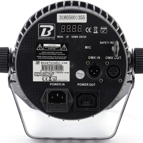 Le Par Led BoomToneDJ se pose au sol, se suspend ou se fixe sur un truss. Les connecteurs IEC IN/OUT permettent de chaîner plusieurs unités. Sa structure légère et robuste facilite le transport et l’installation rapide. C’est un atout pour les DJ, techniciens et organisateurs itinérants.