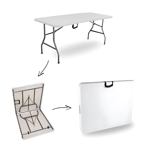 En outre, la Table Rectangulaire Pliante 180 cm peut accueillir confortablement 6 à 8 personnes, ce qui la rend idéale pour vos repas de groupe, stands, banquets ou réunions. Pour des réceptions encore plus élégantes et haut de gamme, vous pouvez ajouter une housse de table ajustée qui habillera immédiatement votre mobilier d’un rendu chic et raffiné.