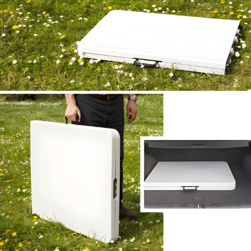 De plus, cette table se plie rapidement en deux et dispose d’une poignée intégrée, ce qui facilite grandement son transport et son stockage. En seulement quelques secondes, vous pouvez la mettre en place sans effort. C’est un choix pratique pour les organisateurs d’événements, les professionnels de la restauration, mais aussi pour les particuliers qui recherchent une table solide et compacte.